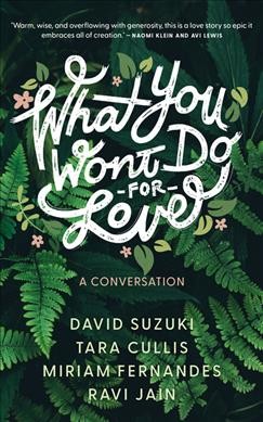"What You Won't Do for Love is an inspiring conversation about love and the environment. When artist Miriam Fernandes approached the legendary eco-pioneer David Suzuki to create a theatre piece about climate change, she expected to write about David's perspective as a scientist. Instead, she discovered the boundless vision and efforts of Tara Cullis, a literature scholar, climate organizer, and David's life partner. Miriam realized that David and Tara's decades-long love for each other, and for family and friends, has only clarified and strengthened their resolve to fight for the planet. What You Won't Do for Love transforms real-life conversations between David, Tara, Miriam, and her husband Sturla into a charmingly novel and poetic work. Over one idyllic day in British Columbia, Miriam and Sturla take in a lifetime of David and Tara's adventures, inspiration, and love, and in turn reflect on their own relationships to each other and the planet. Revealing David Suzuki and Tara Cullis in an affable, conversational, and often comedic light, What You Won't Do For Love asks if we can love our planet the same way we love one another."-- Provided by publisher.